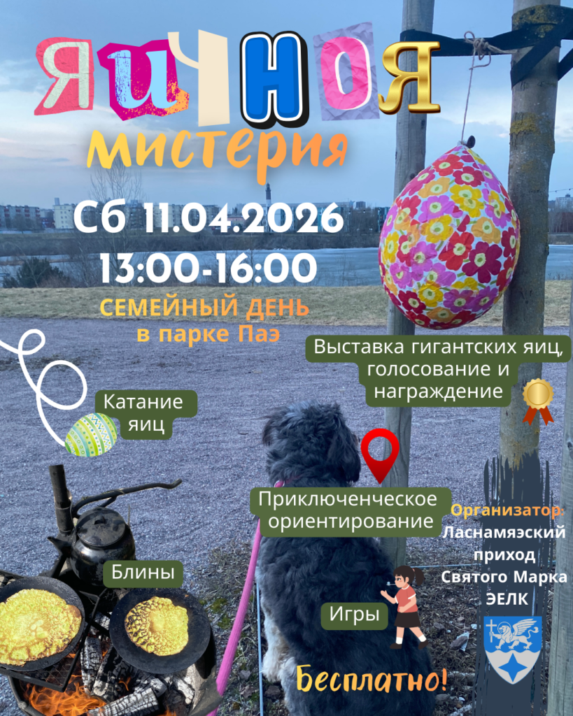 В преддверии праздников мы объявляем КОНКУРС ПО ИЗГОТОВЛЕНИЮ И УКРАШЕНИЮ ГИГАНТСКИХ ПАСХАЛЬНЫХ ЯИЦ! Мы приглашаем жителей Ласнамяэ дать волю фантазии и мастерить их дома, в школах, детских садах, кружках по интересам, вместе с друзьями или даже рабочими коллективами. Полюбоваться конкурсными работами и проголосовать за фаворитов можно будет во время семейного дня «Яичная мистерия», который пройдет 11.04.2026 с 13:00 до 16:00 на холме рядом со зданием районной управы. Награждение состоится в конце мероприятия.