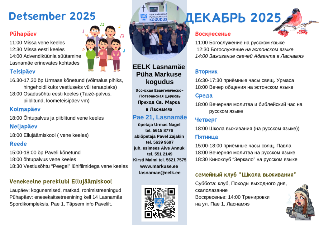 Erandkorras algavad meie eestikeelsed jumalateenistused advendipühapäevadel alles kell 18 õhtul, kui oleme tagasi kuuskede juurest.