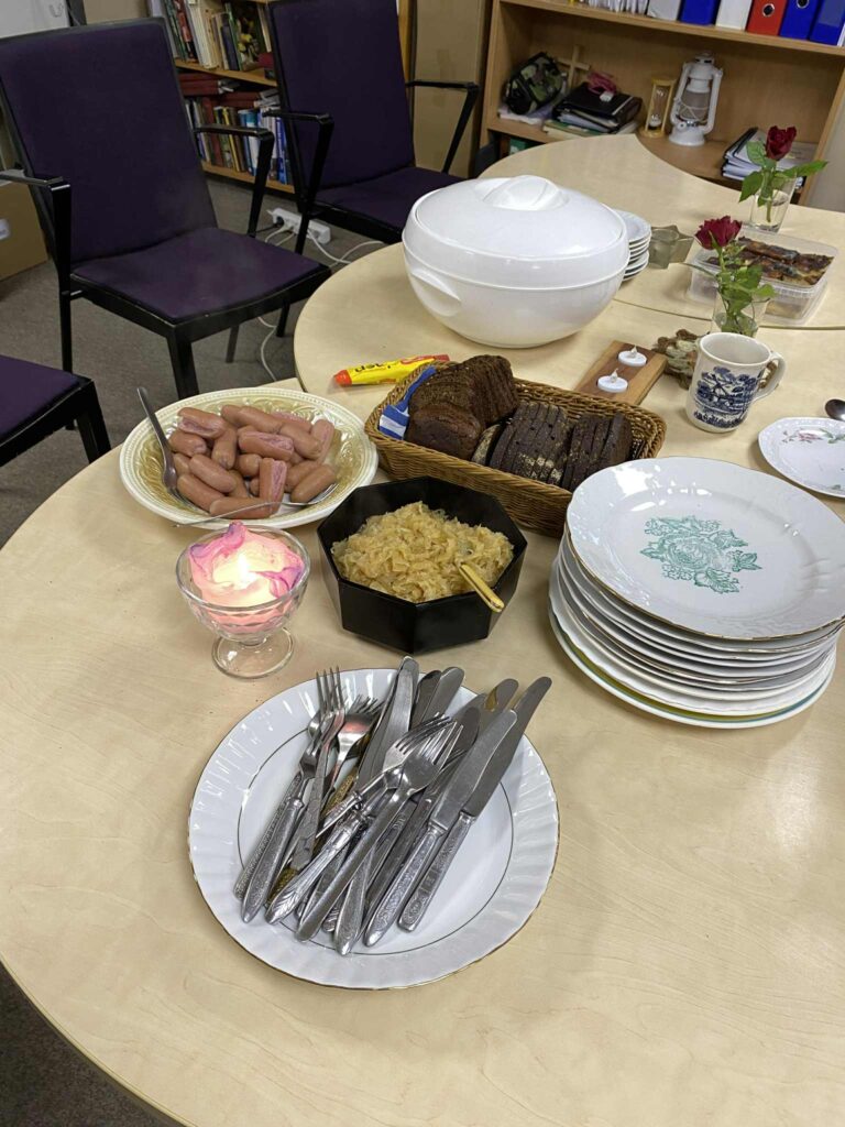 Näib, nagu esmaspäeval valitseks koguduses vaikust, kuid nii see ka pole. Nimelt üsna sageli viib meie diakooniavabatahtlik Aive kõrvalmaja supiköögi letile sildi, et koguguduses pakutakse supiköögi klientidele magustoiduks kohvi&kooki. Kui soovid tulla Aivele appi, helista 5512149.