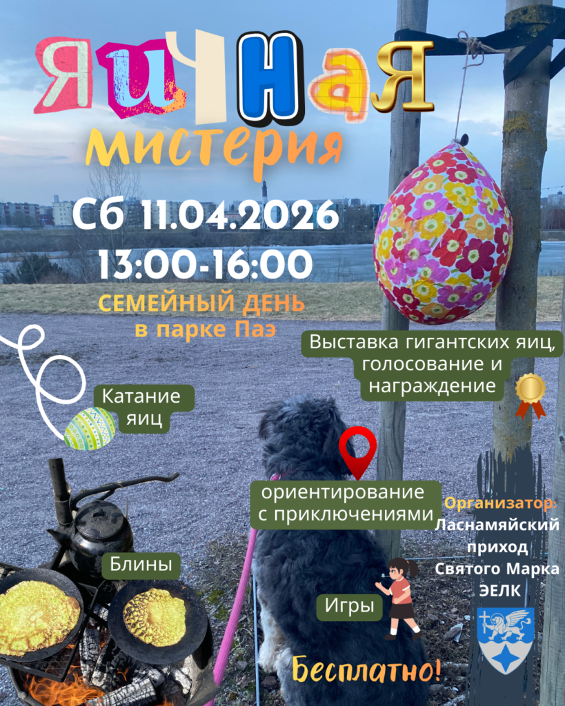 11 апреля в парке Паэ мы организуем общинное семейное весеннее мероприятие, объединяющее эстонское национальное наследие, международные пасхальные традиции, христианский смысл праздника, а также радость игры и творчества.