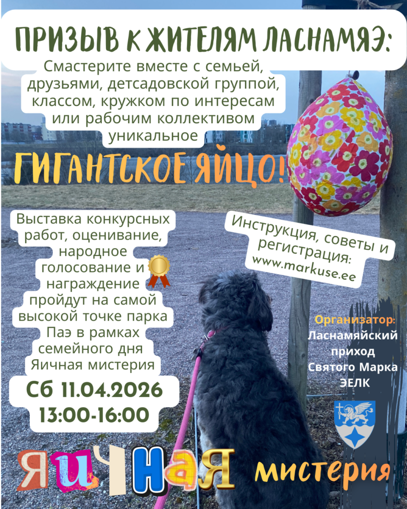 В преддверии праздников мы объявляем КОНКУРС ПО ИЗГОТОВЛЕНИЮ И УКРАШЕНИЮ ГИГАНТСКИХ ПАСХАЛЬНЫХ ЯИЦ! Мы приглашаем жителей Ласнамяэ дать волю фантазии и мастерить их дома, в школах, детских садах, кружках по интересам, вместе с друзьями или даже рабочими коллективами. Полюбоваться конкурсными работами и проголосовать за фаворитов можно будет во время семейного дня «Яичная мистерия», который пройдет 11.04.2026 с 13:00 до 16:00 на холме рядом со зданием районной управы. Награждение состоится в конце мероприятия.