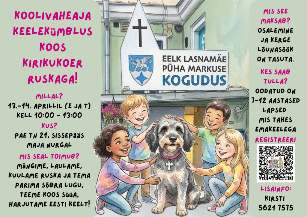 13.-14.04. ootame kahel päeval (esmaspäeval ja teisipäeval) 7-12a lapsi KOOLIVAHEAJA KEELEKÜMBLUSELE KOOS KIRIKUKOER RUSKAGA!